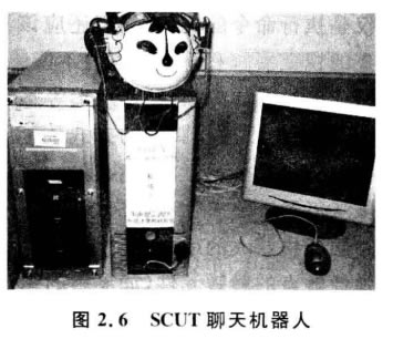 近年來,SCUT “智能計(jì)算機(jī)”科研團(tuán)隊(duì)也對(duì) 聊天機(jī)器人展開了研究,如圖2.6所示。他們開 發(fā)的SCUT 聊天機(jī)器人包括攝像頭及驅(qū)動(dòng)模塊、 語音拾取模塊、語音識(shí)別模塊、知識(shí)查詢模塊、語 音生成模塊;攝像頭捕獲人臉圖像,語音信號(hào)經(jīng) 由語音拾取模塊和語音識(shí)別模塊后識(shí)別出語義,聊天機(jī)器人根據(jù)用戶的語音來了解用戶的需求,